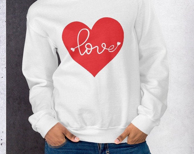 VALENTINES DAY SWEATSHIRT Womens Heart Love Cute Crew Neck Long Sleeve Sweatshirt Valentines Day Gift for Wife Gift for Her Heart Sweatshirt